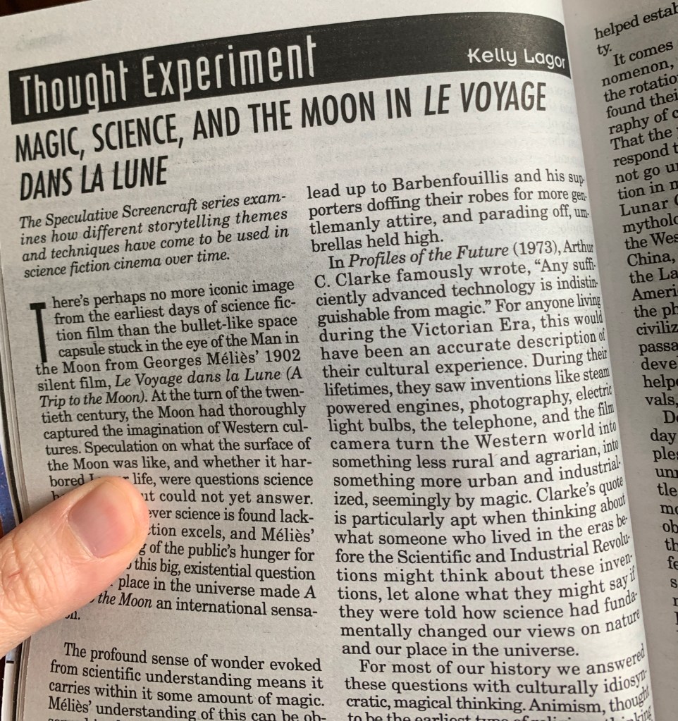 I’ve also got new essays out! The first is in the September/October 2025 issue of Asimov’s on The Shining, which is one of my favorite movies of all time. In this one I looked at Stephen King’s novel (which explored his own addiction issues, like much of his early fiction), Kubrick’s adaptation of his novel (which King hated), King’s TV miniseries done as a response/rebuke to Kubrick’s film. I also look at King’s sequel Doctor Sleep (which ignores Kubrick’s changes), as well as Mike Flanagan’s movie adaptation of Doctor Sleep (which he had to walk quite the tight rope on, as you can’t ignore Kubrick’s film if you’re making a film sequel to The Shining). I’m proud of this one, so check it out! (It’ll also eventually be posted to the Asimov’s Thought Experiment Archives, along with all my other Speculative Screencraft essays).