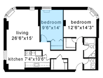 We would then scour the apartment looking for the next clue. Even though our apartment was small, and our bedroom wasn’t included (highlighted in blue), the hunt seemed to make the place stretch out as miles of nooks and crannies and crevices where the clue could be. I even remember one year, I had to look up a movie the clue referred to (out of the thousands that lined the east wall of the living room), get the number from the index – the clue was slipped between the tape and the case.