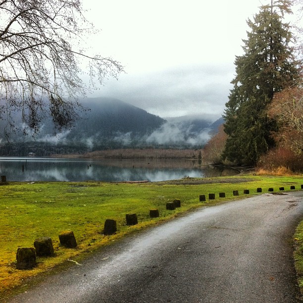 Rainforest was a blur of socializing and typing. I met a lot of new amazing folks that I hope I can see a lot more of this year, not to mention I got a chance to fall into cuddle puddles with fellow VPXVers Nicole, Tucker and Amanda for four whole days. (I still want to dognap Nicole’s dog, even though he liked to hug me with his teeth). We were on a boat! We roadtripped! We stopped in Forks for booze (and to take turns reading from the Twilight Attractions brochure Nicole grabbed from the Forks Visitor’s Center)! We were hypnotized by a waterfall! And oh, my was Lake Quinault beautiful: