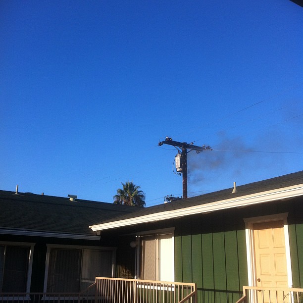 Friday night the transformer connected to my apartment complex exploded. Not just through half-hearted puffs of smoke, but in a literal ball of flames. I was standing outside in my pajamas, watching the doomed transformer with my neighbors when it happened.